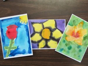 Above: Student-painted notecards and sunflower seeds to benefit Sega